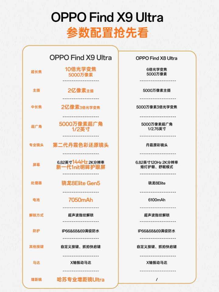 之前没买其他家Ultra即是在等OPPO,因为我心爱拍照影相,嗅觉本年Find X9U有双2亿+惟一10倍光变,全焦段王人明晰才是委果的构图摆脱~何况我看此次Find X9 Ultra和Find X9s Pro的民众格式也升级了,营救好多种的原生胶片,直出就很有相机感~