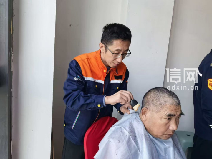 志愿者胡孝涛为住户剃头。(来源:信网)