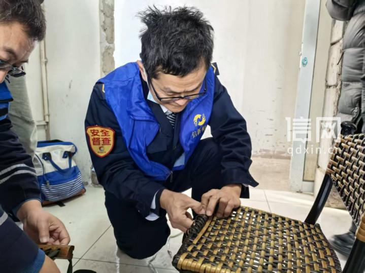 志愿者刘洪波为住户维修板凳。(来源:信网)