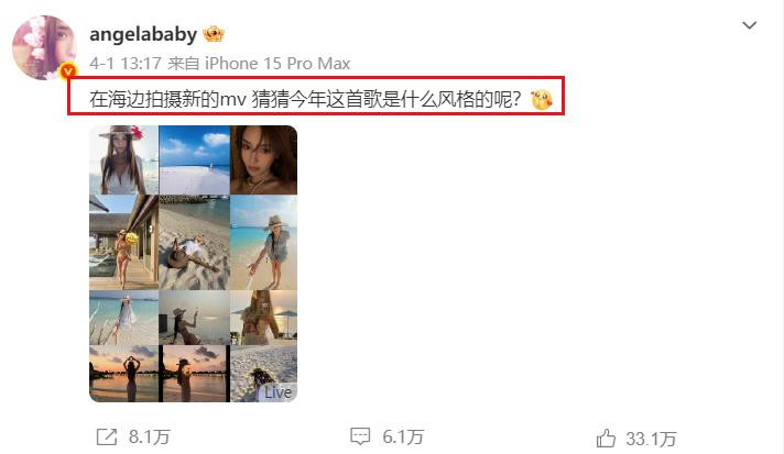 4月1日赶巧愚东说念主节,当全网千里浸在编段子的景观氛围中时,38岁的杨颖(Angelababy)在应酬平台甩出一组海边比基尼好意思照,短暂引爆热搜。