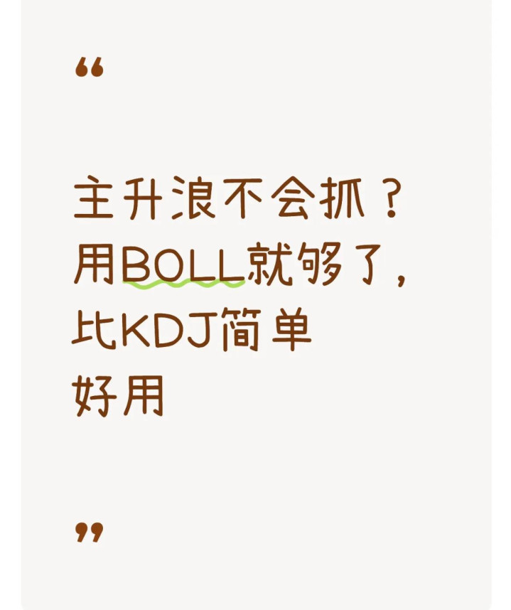 主升浪最磨心态,KDJ天天变、让你颤抖;BOLL信号明确,沿上轨就持有,无须天天盯盘、不被分时搅扰,稳稳吃满主升浪利润。