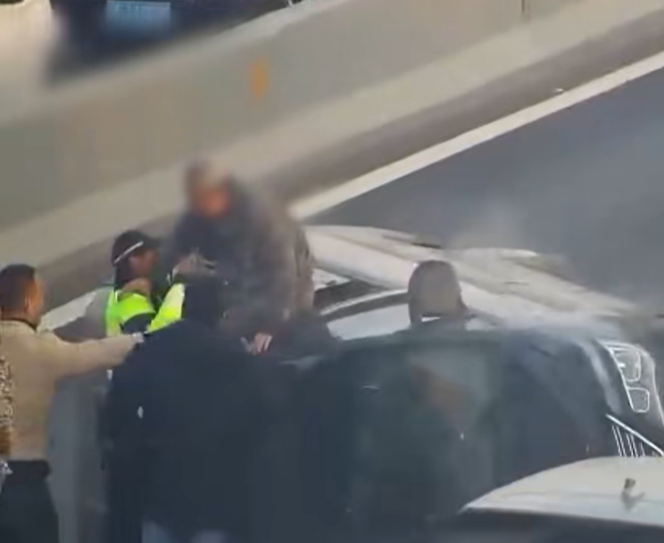 杭州交警高架大队城东中队数字勤务室第一时间发现了情况,立即调度附近执勤的铁骑队员沈斌前往处置。