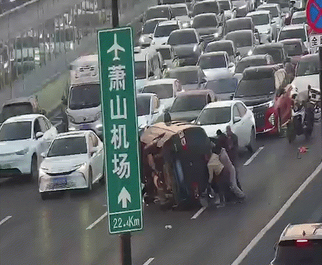“这种时候,最快恢复交通的办法就是赶紧喊大家一起把车翻过来,然后挪走。”