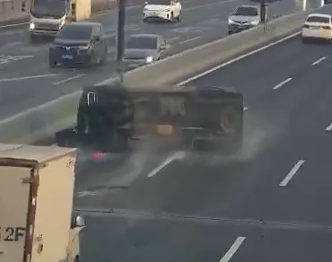 事情发生在1月15日早高峰,杭州东湖高架上。当时,来往车辆川流不息,突然一声沉闷的巨响打破平静,两辆行驶中的汽车发生碰撞,其中一辆面包车当场侧翻。