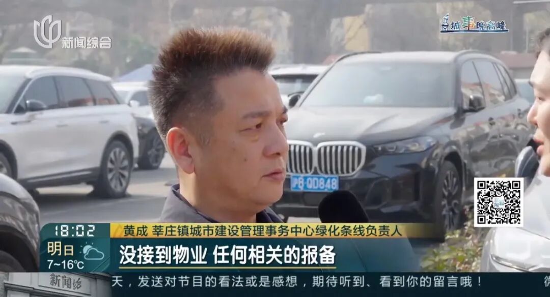 孙丽 莘庄镇绿梅三村居委会主任:我们也是积极通过基层约请,请到职能部门城管、绿化办进行现场调查。作为居委会,日常的巡查或日常的管理,我们这边还是要加强的。