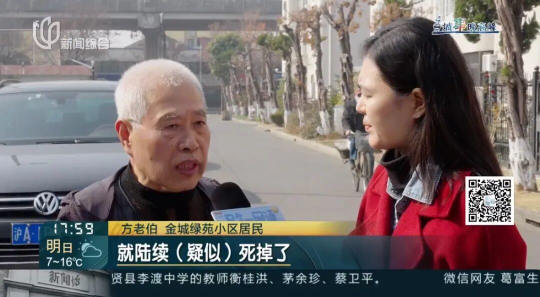 马晓晨 莘庄镇综合行政执法队队员:“我们对物业、业委会、居委会、包括龙柏树附近居民都进行了调查询问,包括物业的监控,都未向我们提供明确的违法当事人和相关证据。我们城管中队后续继续开展调查,也希望有知情的居民向我们提供线索。”