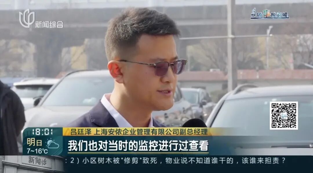 吕廷泽 上海安侬企业管理有限公司副总经理:我们也进行过当时监控查看,监控一般情况下按照正常流程30天保存,确实是没找到。