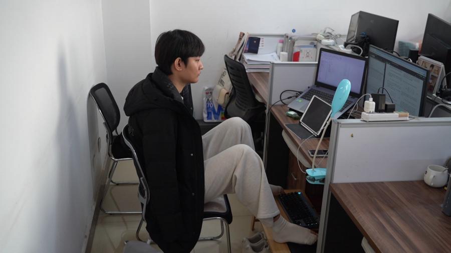 新华社太原1月18日电(记者邓浩然)一米八多的个子,清秀干净的脸庞,眼神清澈而坚韧——这是记者初见王海港时的印象。在太原理工大学数学学院的自习室里,他用左脚敲击键盘,右脚操控鼠标,正专注于一篇全英文专业论文。空荡荡的衣袖,无声诉说着他求学之路的艰辛。