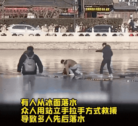 冰面破裂、人员落水的险情