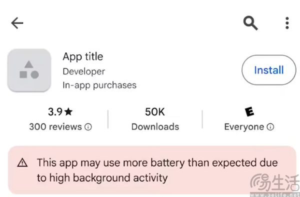 按照谷歌方面的说法,若应用在往时28天内有进步5%的用户会话(Session)中,在熄屏情景下平均后台叫醒达2小时或以上,就会被认定为“耗电颠倒应用”,此类应用在Play Store的搜索/展示权重受到负面影响。此外,此高耗电应用将在Play Store中会出现醒指标红色劝诫,并会径直在页面标注“后台活动较多,电板消费可能高于预期”。