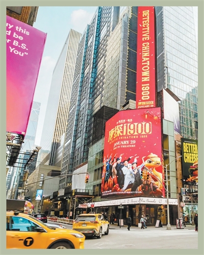 电影《唐探1900》海报亮相美国纽约时报广场。资料图片