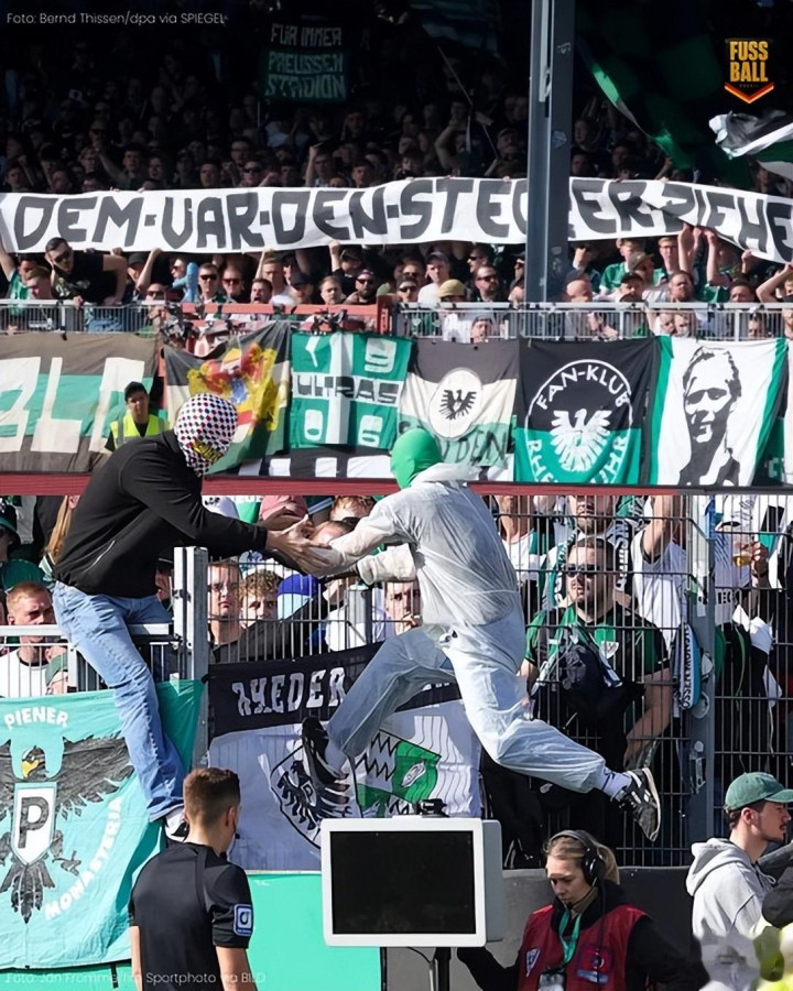 随后原因被曝光:别称戴着头套的明斯特顶点球迷悄悄拔掉了VAR披露器的电源线。