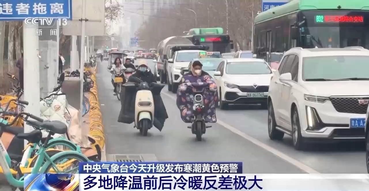 中央气象台最新预报显示,今天(18日)至21日,本轮寒潮主体将继续渗透南下,给我国中东部地区带来大范围强降温、雨雪、冰冻天气。中央气象台今天上午升级发布寒潮黄色预警。