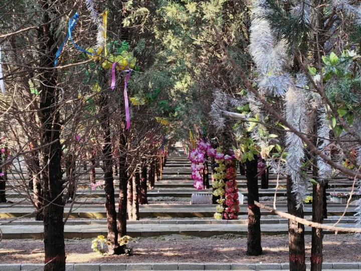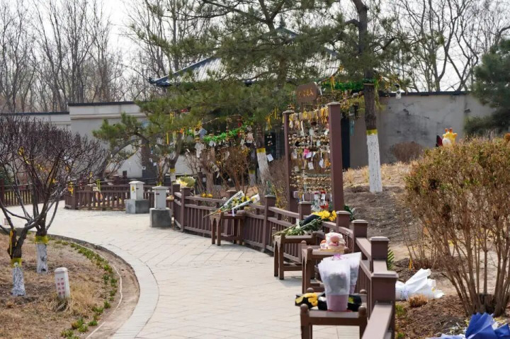 北京市长青生命缅想园内的二期当然葬区,一串串风铃和一束束鲜花寄予着哀思。新华网杨涵摄
