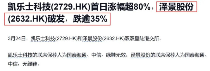 上市首日,泽景股价的弘扬很有港剧《大期间》的格调,从开盘的43.90港元沿路跌到收盘的27.88港元,眼皮子下面市值挥发了近40%。
