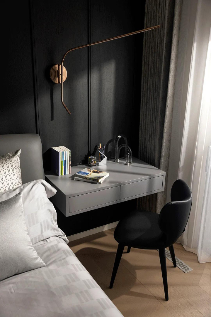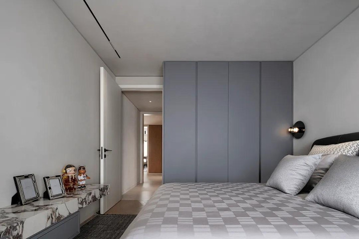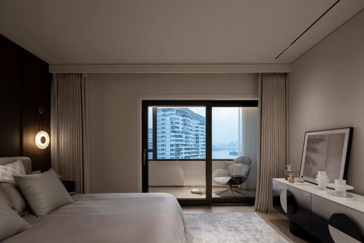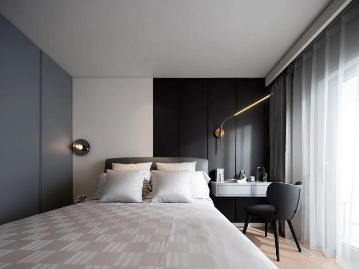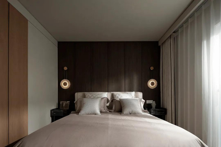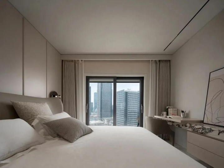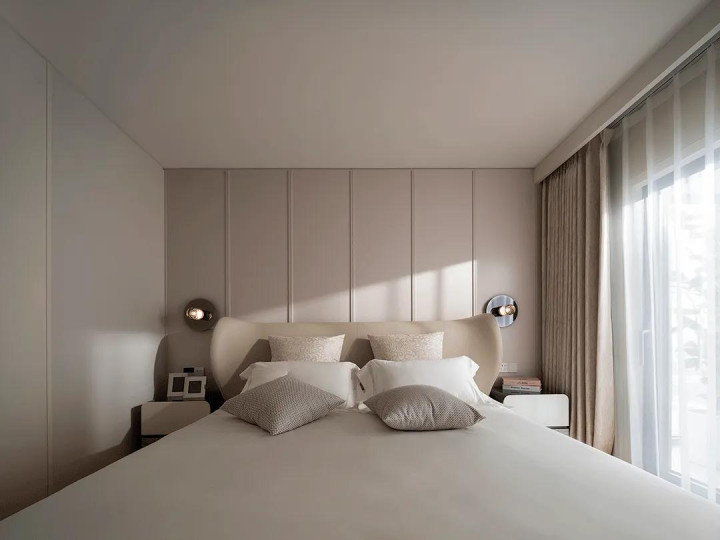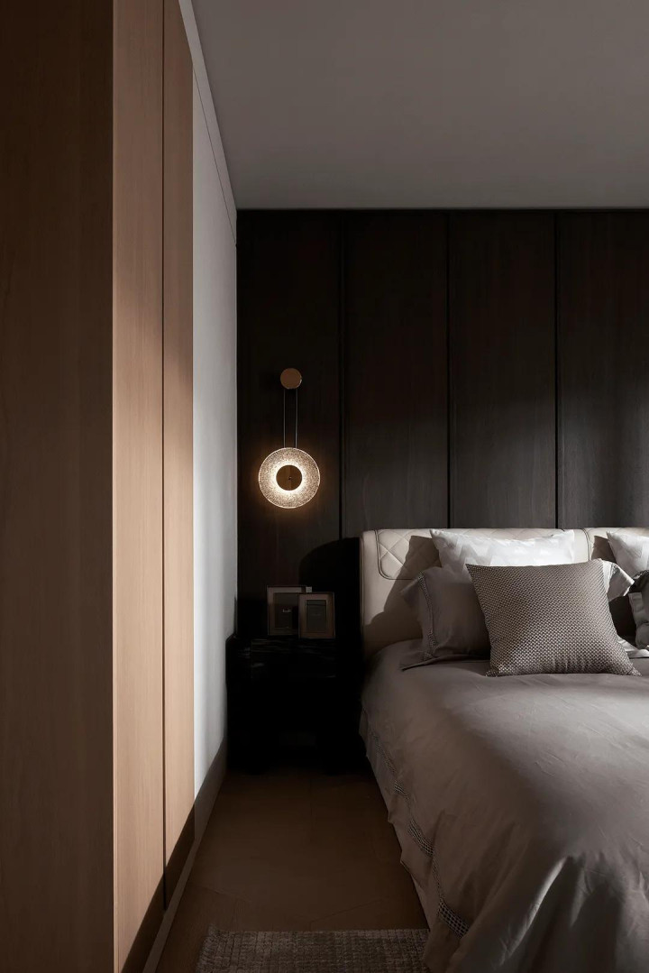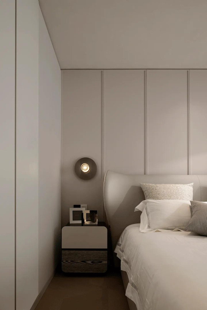 In the master bedroom, the designer chose soft lighting design, which made the rest area more quiet, and a large number of soft bag materials showed the quality, comfort and style beauty here.