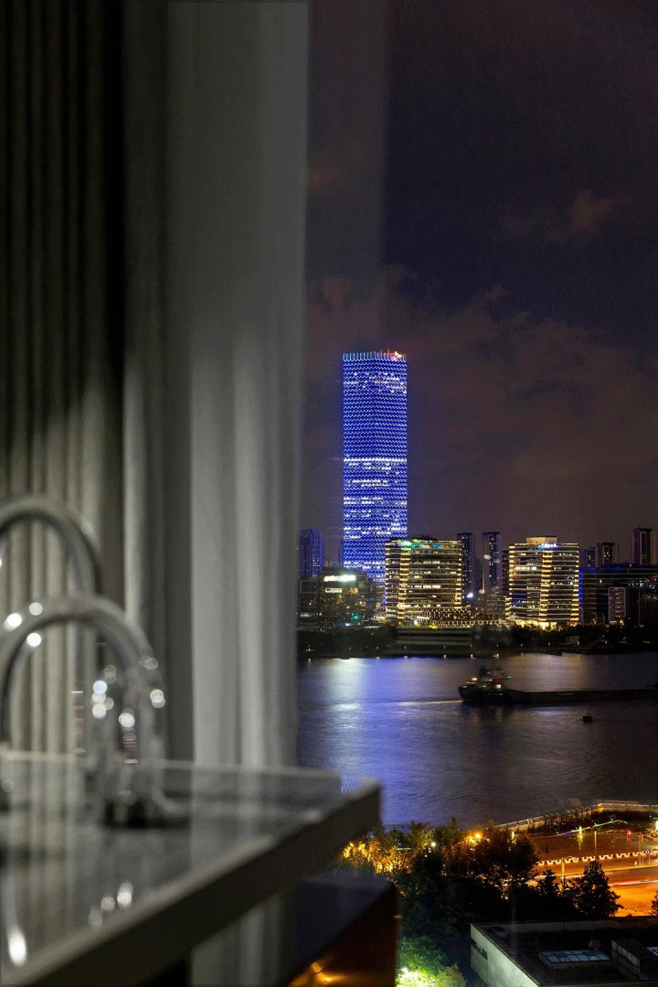 The room is equipped with a balcony. Standing on the balcony, you can enjoy the bright neon in Shanghai and the endless rushing of Huangpu River.