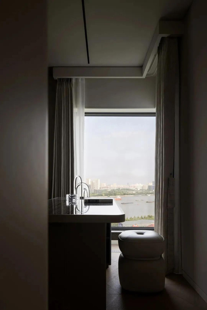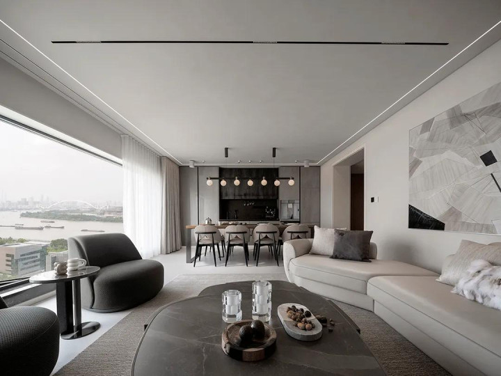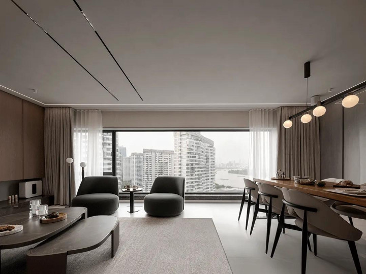 黄浦江就在窗外,奔涌不竭的江水标记着浓烈的糊口立场,而室内的节约气魄则标记漠然的品尝,无形之中彰明显豪宅的魔力。