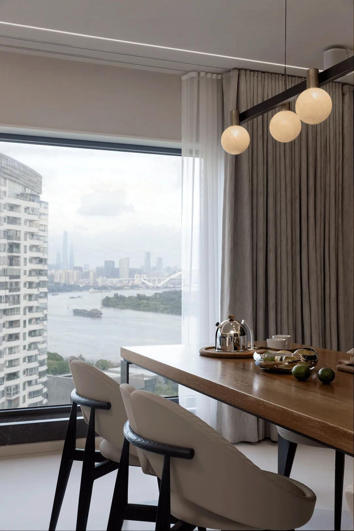 The residents of the mansion are a family of four. The design starts with the habits of the residents and creates a relaxed and elegant living environment. Under the 270-degree view, the river view was perfectly incorporated into the room and became one of the scenery.