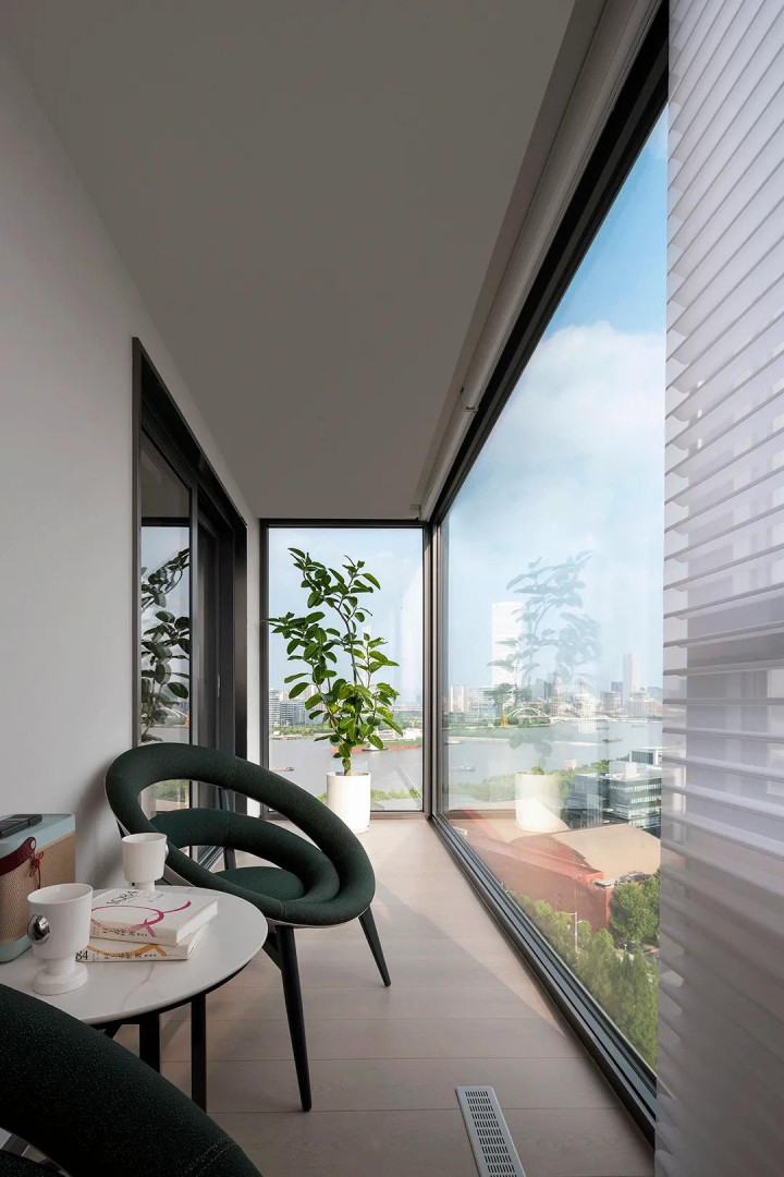 The furniture in the room is freely placed, which just explains the relaxation here. The large-area floor-to-ceiling windows allow residents to clearly enjoy the river view.