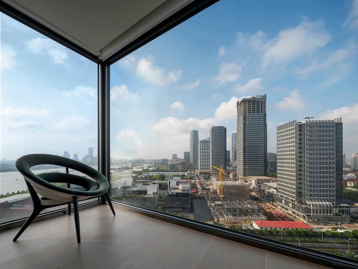 房间配套有一处阳台,站在阳台处,既能观赏到上海的霓虹灿烂,也能观赏到黄浦江的奔涌不竭。