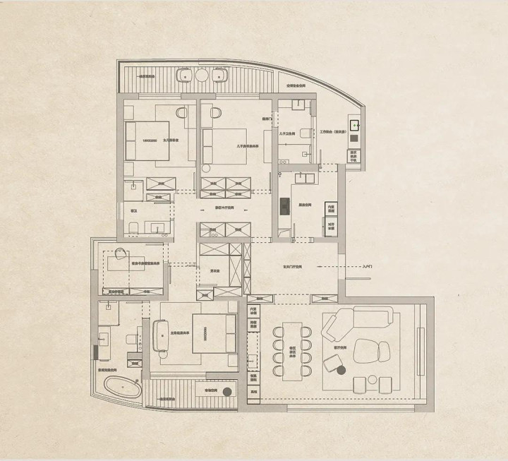 这套江景豪宅面积约为228㎡,窗外的江水为室内的谋略提供了无穷的灵感,在简洁的荫庇中,低调的露馅着江水的气味,有了家东谈主的伴随,这份精细更显珍稀了。