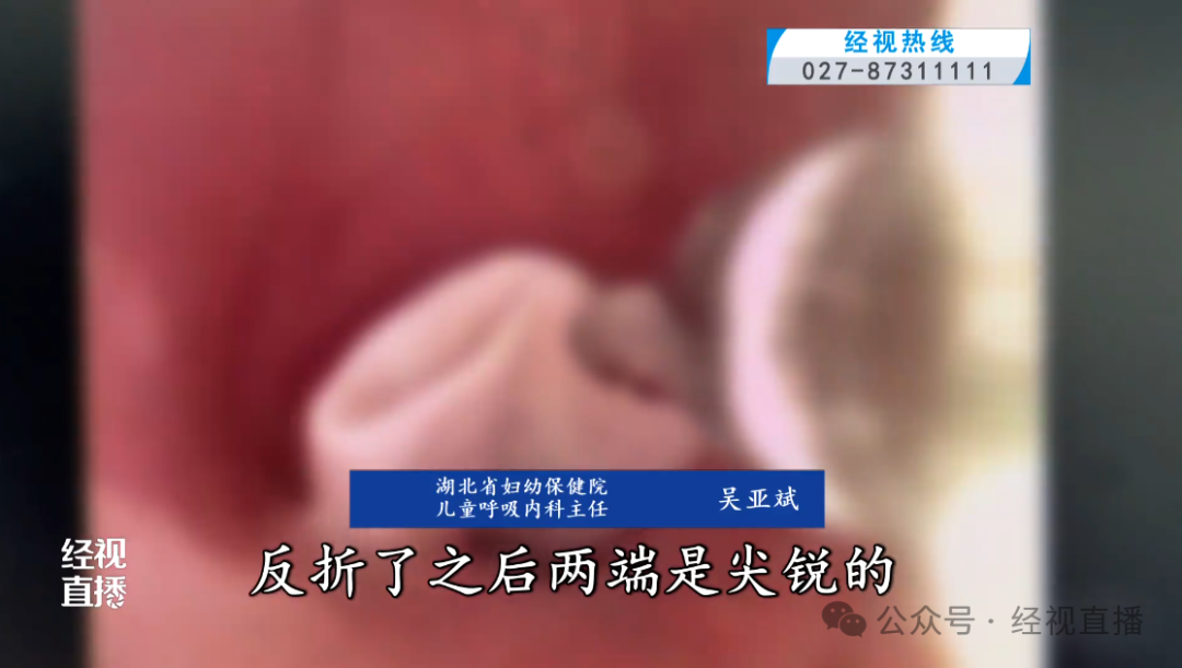 湖北省妇幼保健院儿童呼吸内科主任 吴亚斌:因为(吸管)反折之后两端是尖锐的,容易引起划伤,有可能引起出血。这种划伤的刺激非常强,极容易引起器官痉挛。