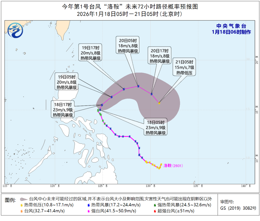 {jz:field.toptypename/}今年第1号台风“洛鞍”已于今天(18日)凌晨减弱为热带风暴级,其中心早晨5点钟位于菲律宾马尼拉东偏南方向约400公里的洋面上,就是北纬15.0度、东经124.7度,中心附近最大风力有9级(23米/秒),中心最低气压为990百帕,七级风圈半径150-300公里。